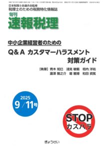 日本税理士会連合会監修の税務特化情報誌「旬刊 速報税理」2025年9月11日号(ぎょうせい)の「中小企業経営者のためのQ&A カスタマーハラスメント対策ガイド」において、基本編のQ1~3を寄稿、掲載いただきました。